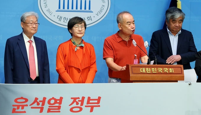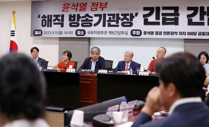 한상혁 전 방송통신위원장과 정연주 전 방송통신심의위원회 위원장, 남영진 전 KBS 이사장, 권태선 방송문화진흥회(MBC 대주주·관리감독기구) 이사장은 11일 국회에서 공동 기자회견을 열고 “언론 자유와 방송 독립이라는 대한민국의 헌법적 가치가 철저히 파괴되고 유린되는 참담한 현실에 직면해 이 자리에 섰다”며 “윤석열 정부의 전두환식 언론 쿠데타에 맞서겠다”고 밝혔다.