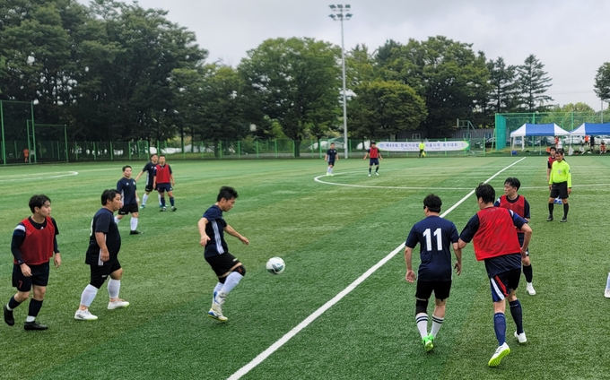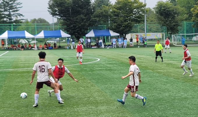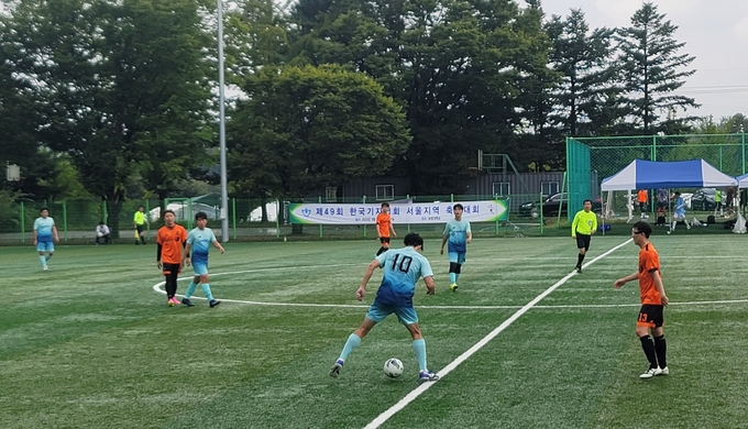 17일 농협대학교 운동장에서 열린 16강전 첫 경기는 지난해 3위팀인 이데일리, 매일경제의 맞대결이었다. 경기 초반 승기는 매일경제가 잡았다. 전반 11분 박지훈 매일경제 기자가 코너킥 기회를 골로 연결해 첫 번째 득점을 기록했다. 이대로 승패가 결정되나 싶더니 이데일리가 막판 반격에 나섰다. 경기 종료 1분을 앞두고 허윤수 이데일리 기자가 골을 넣어 승부를 원점으로 돌렸다.