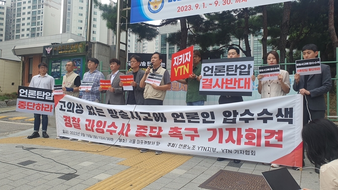 이날 오후 한국기자협회 YTN지회와 전국언론노조 YTN지부는 서울 마포경찰서 앞에서 긴급 기자회견을 열고 경찰의 압수수색 시도를 규탄했다.