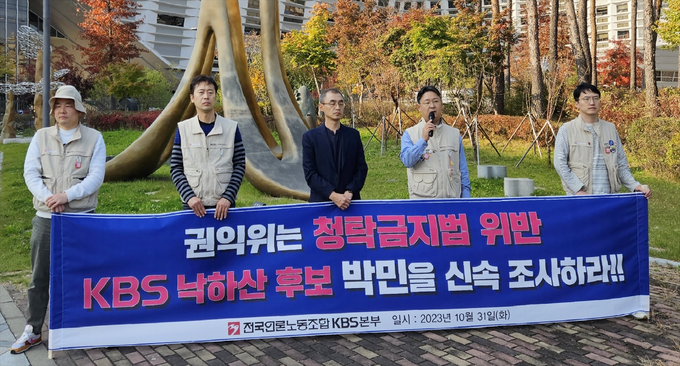 전국언론노조 KBS본부는 31일 기자회견을 열어 박민 KBS 사장 후보자의 청탁금지법 위반 의혹을 신속히 조사하라고 국민권익위원회에 촉구했다.