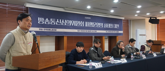 18일 서울시 중구 프레스센터에서 전국언론노조 주최로 열린 ‘방송통신심의위원회 파행운영의 실태와 대안 토론회’에서 심영섭 경희사이버대학교 미디어영상홍보학과 겸임교수는 “방심위원의 독립성이나 임기보장, 결격사유에 대한 제도가 여전히 느슨하다”며 이 때문에 상대 진영 위원의 작은 비위를 문제 삼아 해촉시키는 등 “제도 운용에서 ‘아시타비’가 되고 있다”고 말했다.