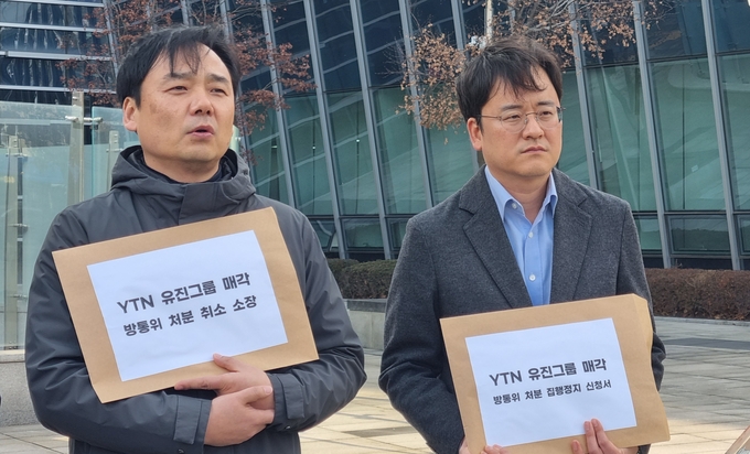 윤창현 언론노조 위원장은 이날 서울행정법원 앞에서 열린 기자회견에서 “우리는 자격이 의심스러운 부실자본인 유진그룹에 (YTN을) 매각하기로 한 결정에 일관되게 반대해 왔다”며 “불법적인 2인 체제 아래서 이뤄진 매각 결정은 절차와 내용에 있어 심각한 하자가 있다”고 주장했다.