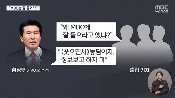 이어 “현 정부 들어 여권의 좌표 찍기에 여러 번 시달려온 MBC 기자들에게는 고위 공직자의 이와 같은 언급은 권력의 ‘살기’로 전해질 수밖에 없다”며 “뿐만 아니라 방송 저널리스트들이라면 대통령실이 언론의 감시와 비판 역할을 어떻게 인식하고 있는지 고스란히 드러낸 셈이어서 가볍게 넘길 수 없다. 실제로 문제의 발언이 나오자 곧바로 ‘그게 무슨 뜻이냐’고 되물었던 기자는 MBC 기자가 아니었다”고 지적했다.