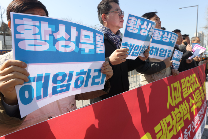 앞서 대통령실은 이날 오전 황상무 수석의 사의를 수용했다고 언론 공지로 전했다. 황 수석이 ‘언론인 회칼 테러 사건’을 언급하며 물의를 일으킨 지 엿새만이다. 황 수석은 지난 14일 MBC를 포함한 출입기자들과의 식사 자리에서 “MBC는 잘 들어”라고 한 뒤 “내가 정보사 나왔는데 1988년에 경제신문 기자가 압구정 현대 아파트에서 허벅지에 칼 두 방이 찔렸다”고 말해 언론계 반발을 산 바 있다.