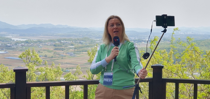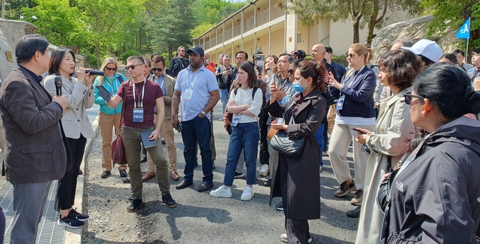 세계기자대회에 참가한 기자들은 통일대교에서 검문을 거쳐 DMZ 내부에 있는 도라산전망대까지 이동했다. 도라산전망대는 국군이 관측소로 사용하다가 관광시설로 운영하는 곳이다. 판문점까지 직선거리로 불과 6km 떨어져 있다.