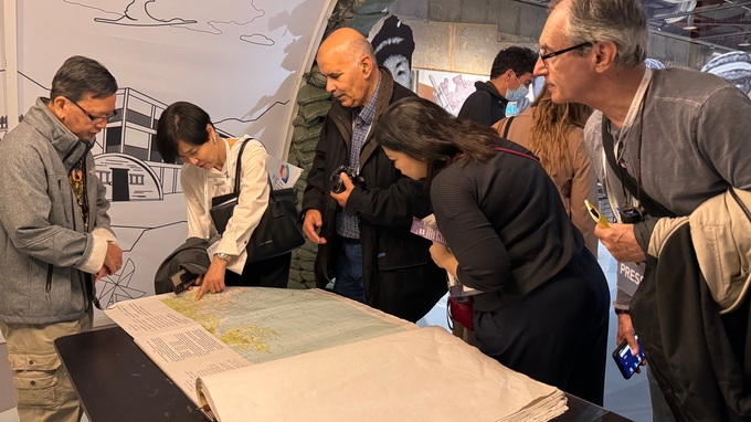 여러 국가에서 온 기자들은 가장 큰 전시 공간인 ‘갤러리 그리브스’를 주의 깊게 둘러봤다. 미군이 부대 내 오락을 위해 볼링장으로 썼던 시설로, 우리에게는 친숙한 휴전선 형성 과정에 대한 자료가 자세히 설명돼 있었다.