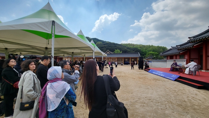 ‘2024 세계기자대회’ 사흘째인 24일 참가자들이 한국의 역사와 문화를 견학했다. 세계 각지 50여 개국에서 온 기자 70여 명은 경기도 수원특례시에서 수원화성 행궁의 완전한 재건을 함께 기념했다.