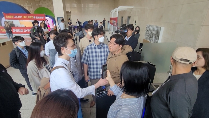 이런 가운데 검찰이 EBS 사무실까지 압수수색 대상으로 삼자 EBS 구성원들은 격분하고 있다. 전국언론노동조합 EBS지부는 이날 성명을 내고 “영장에 담겨진 압수자료는 자체 감사보고서, 법인카드 영수증, 이사장 일 정표 등 방통위를 통해서나 EBS를 통해 얼마든지 공식적인 절차에 의해 입수가 가능한 수준의 것이었다”면서 “EBS 구성원들의 저지에도 불구하고, 초·중학생 견학이 이루어지고 있는 1층 로비에서부터 8명의 수사관을 동원해 무력으로 밀고 들어오는 시도는 군사독재 시절에나 볼 수 있었던 횡포”라고 성토했다.