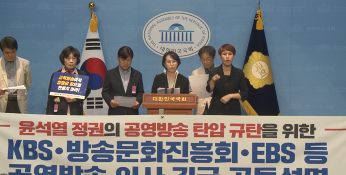 이들은 “윤석열 정부가 자행하고 있는 공영방송 탄압시도를 강력히 반대하고 규탄한다”면서 “‘국민이 주인인 공영방송’을 장악하고 해체하여 ‘정권이 주인인 공영방송’으로 만들어 언론의 자유와 민주주의를 질식시키려는 모든 시도들에 대해 끝까지 싸울 것”이라고 밝혔다.