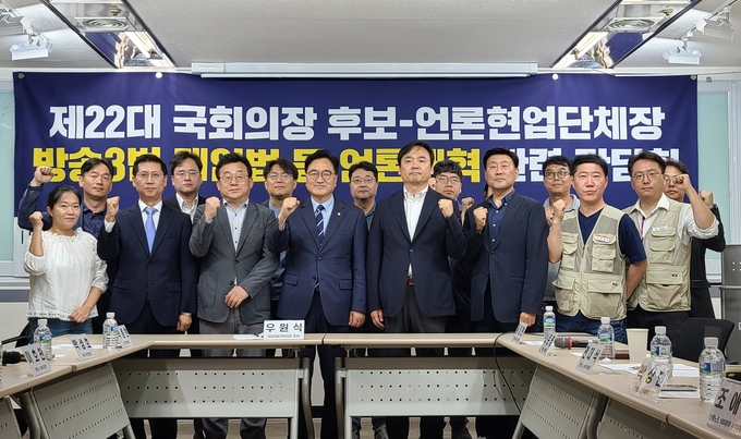 언론현업단체들이 우원식 국회의장 후보와 간담회를 갖고 22대 국회서 방송3법 재입법 등 언론개혁 안건을 조속히 처리해주길 촉구했다.