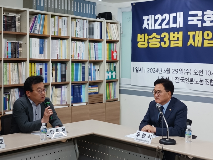 전국언론노동조합 등 언론현업단체들은 29일 서울 중구 한국프레스센터 18층 언론노조 회의실에서 간담회를 열고 우원식 의장 후보에게 언론개혁 의제를 전달했다. 주요 의제엔 △방송3법 재입법을 포함한 공영방송 정치독립 추진 △언론장악 국정조사 실시 △미디어 규제·진흥체제를 전면 개편할 국회 미디어특위 설치 △신문법 개정을 통한 자본권력으로부터의 편집권 독립 추진 △미디어 비정규직 노동자 차별 개선 등이 포함됐다.