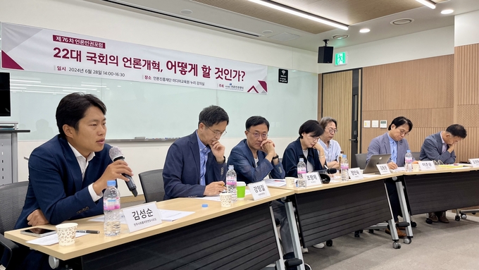 6월28일 언론인권센터 주최로 열린 ‘22대 국회의 언론개혁, 어떻게 할 것인가?’ 토론회에서 강형철 숙명여대 교수는 “만약 정부 입법이라면 이렇게 공론화 없이 밀어붙이는 것에 대해 민주당과 시민단체가 뭐라고 했을지 생각해보자”고 꼬집었다. 강 교수는 “지금 이렇게 밀고 나가는 건 당장 MBC 사장 (교체) 문제와도 무관하다. 어차피 윤석열 대통령은 거부할 거고, 그럼 면피만 되는 거 아니냐”면서 “좋은 선례를 만들기 위해서라도 논의가 필요하다”고 했다.