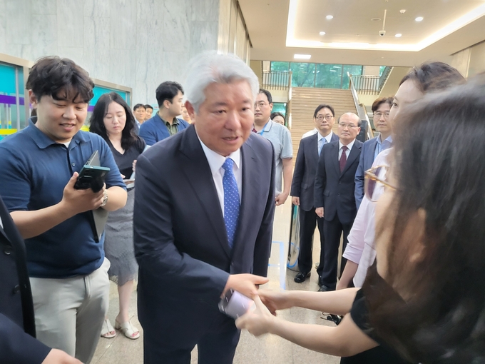 지난달 28일 방통위가 KBS와 MBC, EBS 이사진 선임계획을 기습 의결한 데 이어 김홍일 위원장 퇴임식도 급박하게 이뤄졌다. 방통위는 퇴임식 시작 1시간 30분 전에서야 기자들에게 공지했다. 퇴임식 직후 방통위를 떠나면서 김 위원장은 기자들의 질문에 답하지 않았다.
