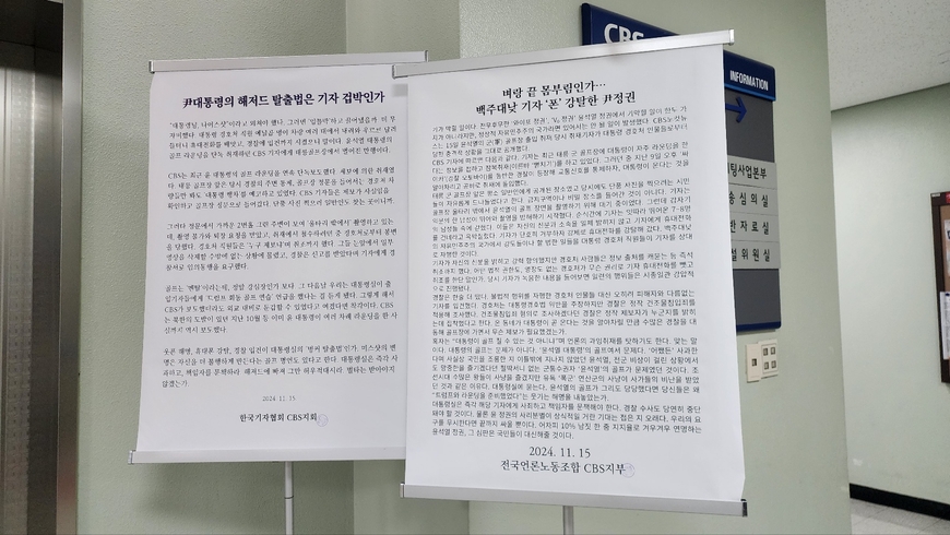 CBS지회는 “‘웃픈’ 해명, 휴대폰 강탈, 경찰 입건이 대통령실의 ‘벙커 탈출법’인가”라며 “대통령실은 즉각 사과하고, 책임자를 문책하라”고 요구했다.