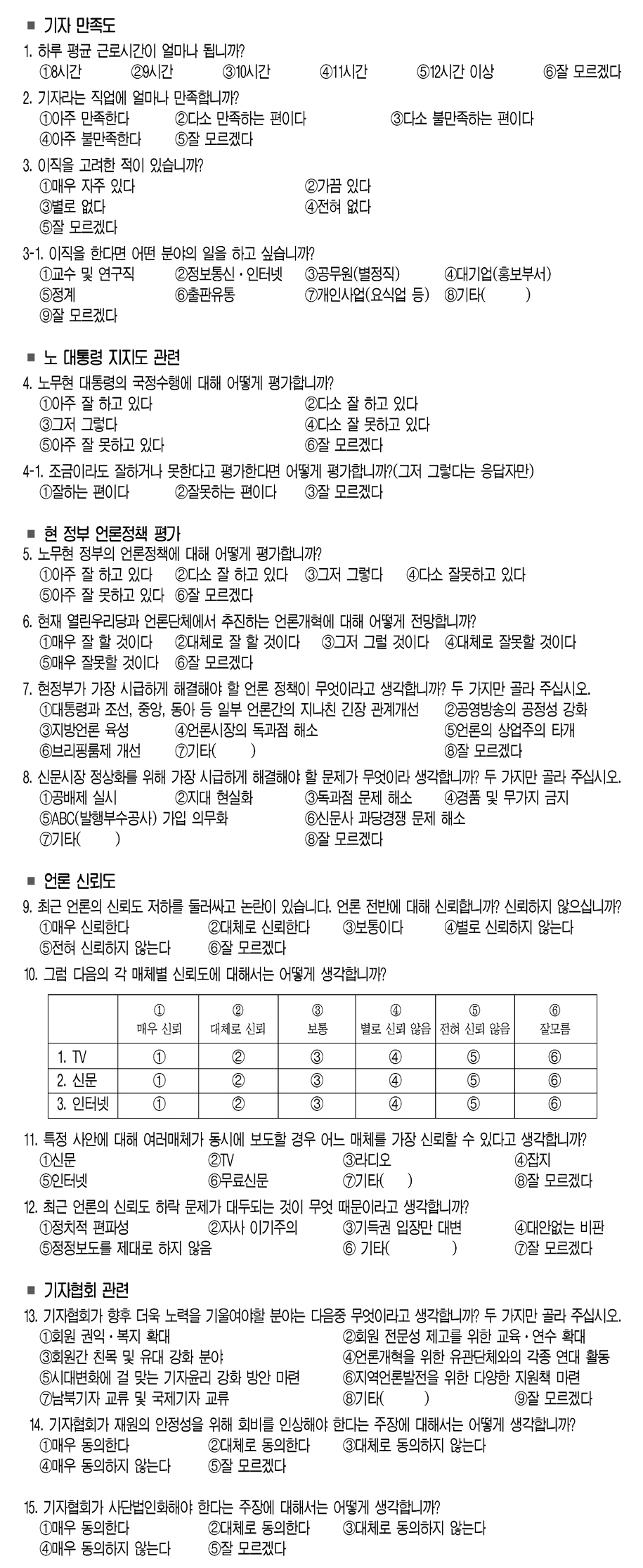 기자여론조사 설문항목