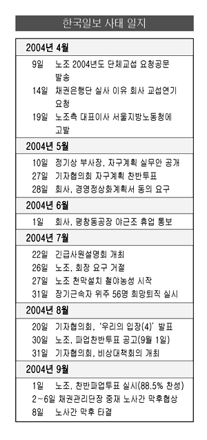 장재구 회장의 증자약속 불이행과 이에 따른 구성원들의 불신, 회사 구조조정안에 대한 노조측 반발 등 지난 4월부터 5개월간 진행됐던 한국일보 사태는 그야말로 청산이냐 존속이냐를 우려할 정도였다.