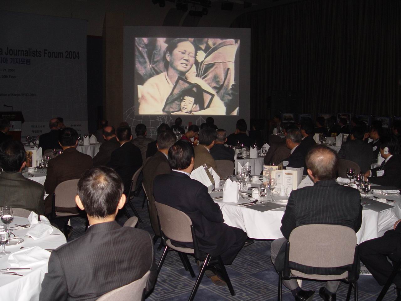 개막식 참석자들이 기자협회의 40년 역사를 담은 동화상을 보고 있다.