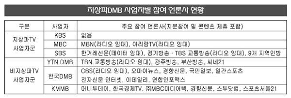 그러나 지상파DMB의 경우 중계망 구축과 단말기 보급 공조 등의 과제가 남아 있어 사업자간 협력이 절실하다.