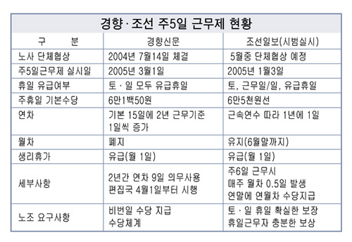 이 같은 사실은 본보가 주 5일근무제를 시행중인 경향신문과 조선일보(시범실시)를 취재한 결과 밝혀졌다.