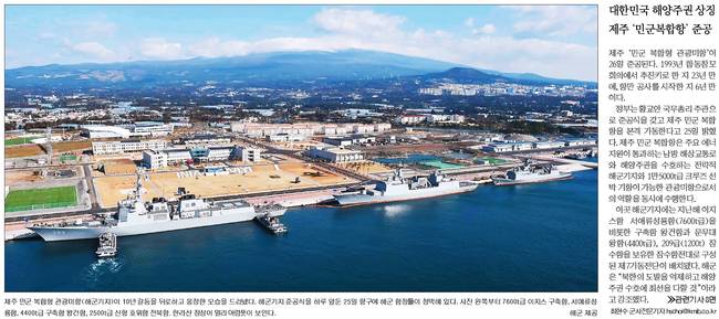 국민일보, 서울신문, 세계일보, 조선일보도 이날 제주 민군 복합형 관광미항(해군기지)이 10년 갈등을 뒤로하고 웅장한 모습을 드러냈다고 전했다.