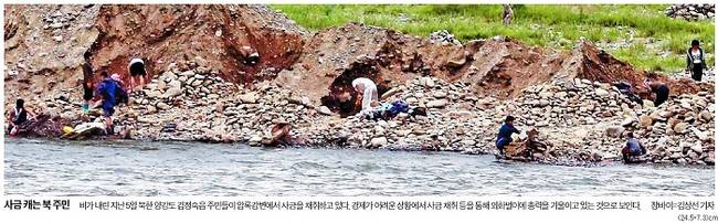 중앙일보는 북한이 외화 벌이에 적극 나서고 있다는 소식을 전하며 북한 양강도 김정숙읍 주민들이 압록강변에서 사금을 채취하는 모습을 1면에 담았다. 중앙은 관련기사에서 “북한의 도박사이트 운영 등 사이버상에서 불법 행위로 벌어들이는 돈이 한 해에 1조원(약 10억 달러)에 달한다는 주장이 나왔다”면서 “군 당국은 또 북한 정찰총국과 노동당 통일전선부에서 6000여명의 해커가 활동 중이라고 밝혔다”고 보도했다.