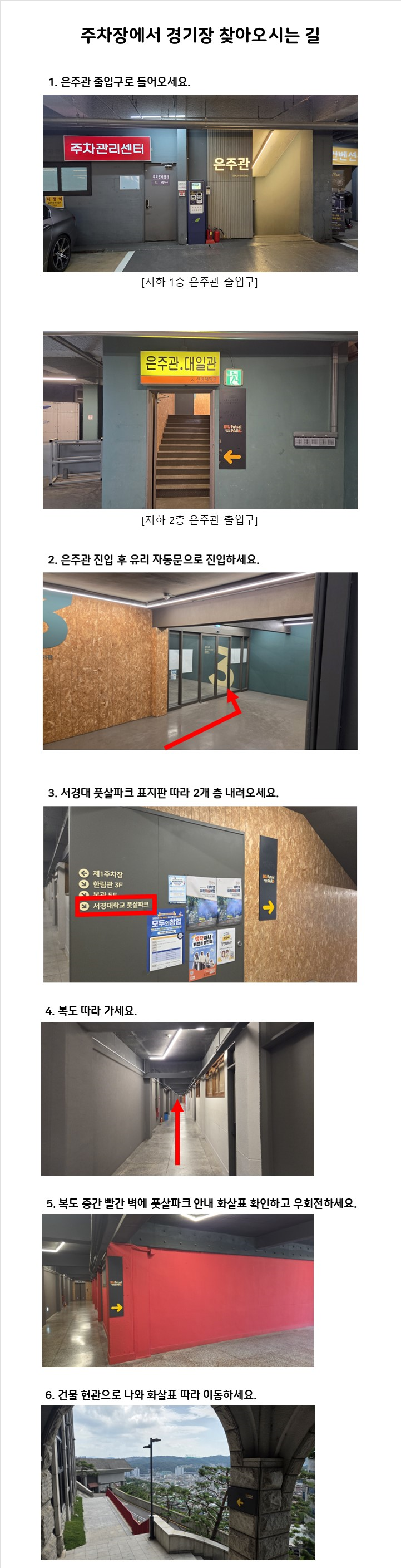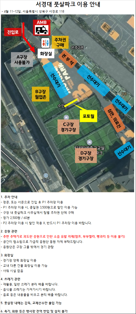제4회 여성회원 풋살대회 경기장. 주차장 이용 안내