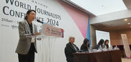 22일 2024 세계기자대회 두 번째 콘퍼런스에서 기자들은 각국의 인공…
