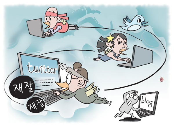 트위터(Twitter)가 또 하나의 미디어로 등장하고 있다. ‘마이크로 블로그(Micro blog)’라고 불리는 낯선 세상이 온라인 지형을 바꾸고 있는 것. 기자들은 트위터를 이용해 실시간으로 취재원을 관리하고 정보를 취득함은 물론 독자(시청자)들과의 새로운 소통창구로 이용하는 등 활동영역을 넓혀가고 있다. 확대되고 있는 기자들의 트위터 세상을 들여다보았다.트위터 세상에서 가장 주목을 끌고 있는 기자는 단연 MBC 김주하 앵커(@kimjuha)다. 그는 지난 7월16일 트위터의 문을 열었다. 그의 트위터는 한 달 여 만에 6천5백여 명의 누리꾼이 팔로윙(Following-온라인 정기구독)을 신청하는 등 큰 인기를 모으고 있다. 이는 박중훈씨 등 유명 배우나 작가 등과 비교해도 뒤지지 않는 수치다.
