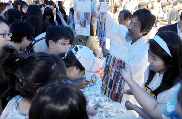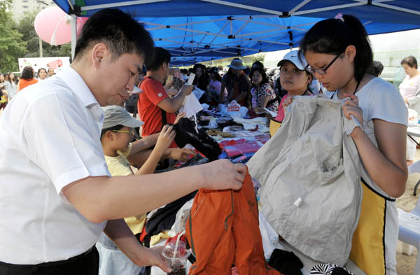 | ▲ 바자회 참석자들이 6일 오후 운동장에서 참석자들이 물품을 팔고 있다.(뉴시스) | ||