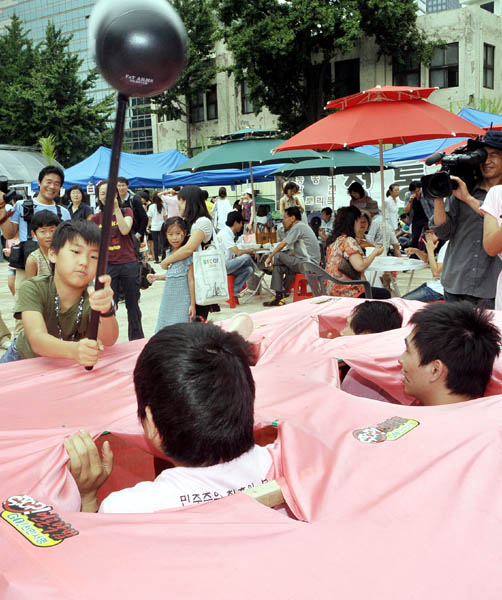 | ▲ 탐탐한 바자회에서 한 어린이가 두더지 게임을 하고 있다.(뉴시스) | ||