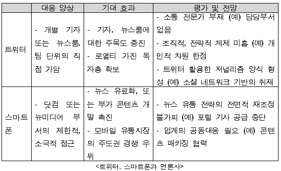 이는 시장은 가만히 기다려선 열리지 않는다는 것을 보여준다. 그만한 투자와 성의를 보일 때 수용자들도 지갑을 여는 것이다. 그런 점에서 트위터나 아이폰은 뉴스룸의 변화를 촉진하는 재료로 쓰여져야 할 것이다.