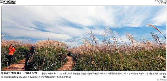 국민일보는 18일부터 27일까지 억새축제가 열리는 하늘공원의 ‘억새 물결’을 보여주며 완연한 가을이 왔음을 알렸다. 동아일보는 ‘치유는 없이…갈라진 광장’이라는 1면 기사와 함께 “세종대로를 사이에 두로 세월호 해법을 둘러싼 찬반 시위가 벌어지고 있다”며 광화문광장에서 대로 하나를 두고 세월호 유족들의 농성과 이를 비난하는 단체로 나뉜 사진을 게재했다.