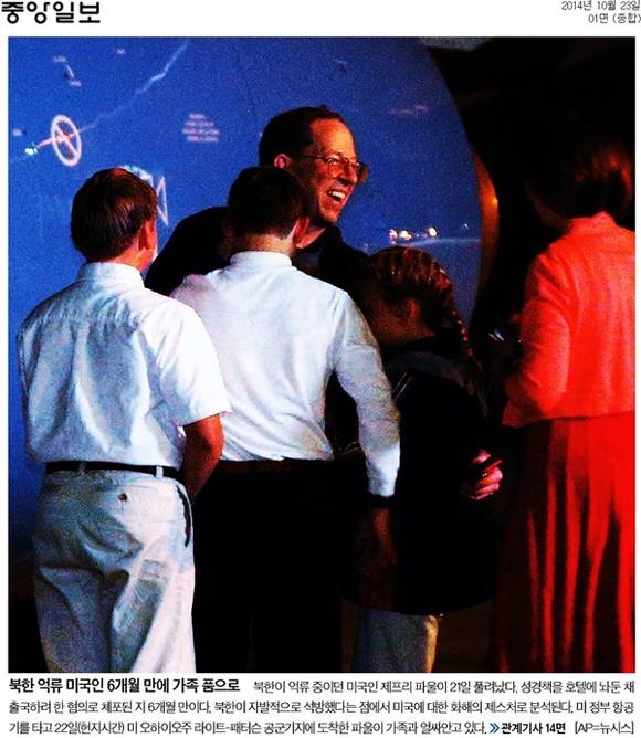 국민일보와 중앙일보는 파울씨가 미국에 도착해 부인, 세 자녀들과 재회한 모습을 실었다. 중앙일보는 “북한이 자발적으로 석방했다는 점에서 미국에 대한 화해의 제스처로 분석된다”며 “미 정부 항공기를 타고 22일(현지시간) 미 오하이오주 라이트패터슨 공군기지에 도착한 파울이 가족과 얼싸안고 있다”고 밝혔다. 국민일보도 “북한이 전날 파울씨를 석방함에 따라 미 공군 소속 항공기가 평양 순안국제공항에서 파울씨를 태워 괌 미군기지를 거쳐 그의 고향인 오하이오주에 도착했다”고 밝혔다.