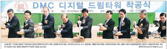 한국일보는 새 사옥이 될 서울 상암동 디지털미디어시티(DMC) ‘디지털드림타워’ 착공식 소식을 1면으로 전했다. 한국일보는 30일 서울 마포구 상암동 1595-1 부지에서 한국일보가 주축인 프로젝트금융투자회사(PFV) 주주사와 서울시 및 마포구, 입주사, 설계‧건축회사 등 관계자들이 참석한 가운데 드림타워 착공식을 가졌다고 보도했다. 드림타워는 지상 15층, 지하 5층의 스마트 오피스 전용 빌딩으로 설계되며 CJ건설이 공사를 맡아 2016년 8월 말 준공될 예정이다.