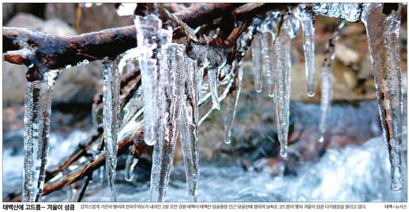 한국일보는 '태백산에 고드름...겨울이 성큼'이란 1면 사진을 통해 성큼 다가온 겨울 소식을 전했다.