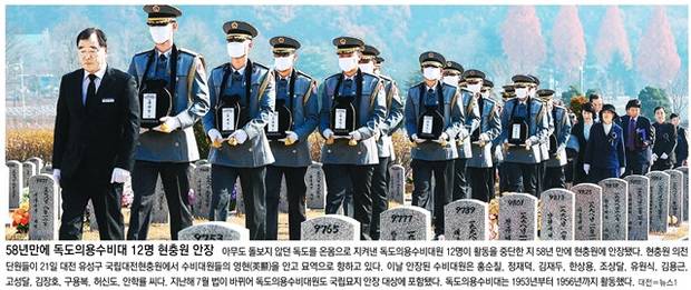 동아일보는 지난 1953년부터 1956년까지 활동한 독도의용수비대원 12명이 활동을 중단한 지 58년 만에 현충원에 안장되는 사진을 1면에 보도했다. 국민일보는 이민개혁안을 발표하는 버락 오바마 미국 대통령을 TV로 지켜보던 한 아이를 1면 사진으로 실었고, 세계일보는 일본 하원인 중의원이 해산되는 모습을 지켜보는 아베 신조 총리의 비장한 표정을 1면에 보도했다.