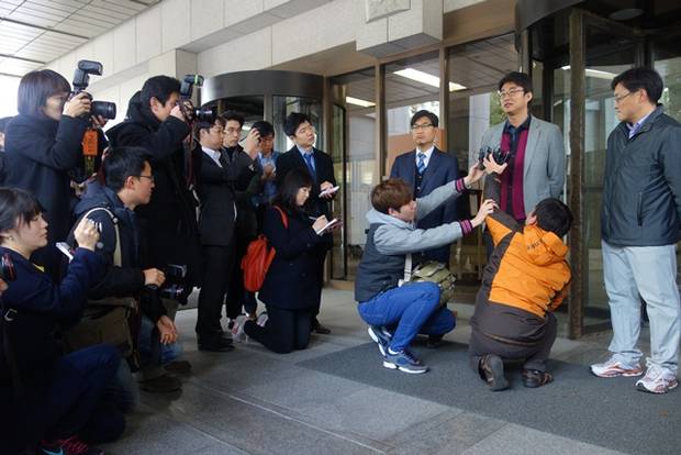 ‘남의 일’일 수만은 없는 40여명의 취재진들도 법정 앞에 모여들었다. 뉴스타파, 한겨레신문, JTBC, OBS 등 다수 매체가 카메라와 수첩에 동료 선후배인 해직기자들의 모습을 기록했다. 이 중에는 YTN 취재진도 있었다. 법정에 들어가기 전 카메라 앞에 선 6명의 해직기자는 다소 긴장한 듯하면서도 담담한, 때로는 웃음 띤 얼굴로 대법원의 현명한 판단에 기대를 걸었다.