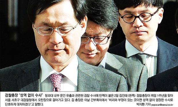 서울신문은 박근혜 대통령의 측근으로 알려진 정윤회씨의 국정개입 의혹 사건을 계기로 박 대통령의 폐쇄적 국정 운영 스타일을 1면 머리기사에서 지적하며 이번 사건 관련 “성역 없는 수사”를 약속한 김진태 검찰총장 사진을 1면 사진으로 실었다. 김 총장은 2일 간부회의에서 “비리와 부정이 있는 곳이면 성역 없이 엄정한 수사로 단호하게 대처하겠다”고 말했다.