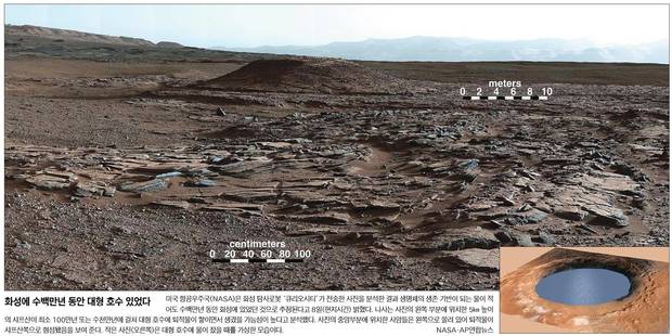 한겨레와 한국일보는 이날 미국 항국우주국(나사)의 화성탐사 로봇 '큐리오시티'가 화성의 게일 크레이터(분화구) 안에서 촬영한 사진을 1면 사진 기사로 싣었다. 미 나사는 사진 분석 결과 생명체의 생존 기반이 되는 물이 적어도 수백만년 동안 화성에 있었던 것으로 추정된다고 밝혔다.