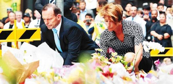 호주 시드니 도심 한복판에서 벌어진 인질극이 17시간 만에 9명의 사상자를 낸 채 끝이 나면서 관련 사진을 1면에 실은 신문도 있었다. 세계일보는 토니 애벗 호주 총리와 부인 마거릿 레이 여사가 시드니 린트 초콜릿 카페에서 벌어진 인질 사건에서 희생된 이들을 추모하기 위해 16일 카페 근처 추모 공간에서 헌화하고 있는 모습을 1면 사진으로 담았다.