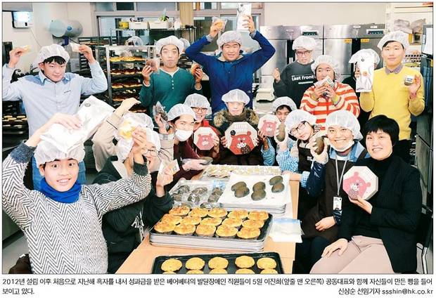 한국일보는 장애인을 고용하는 사회적 기업 베어베터가 2012년 설립 이후 처음으로 흑자를 기록했다는 소식을 1면 기사로 전하며 베어베터 소속 발달장애인 직원들이 이진희 공동대표와 함께 자신들이 만든 빵을 들어 보이고 있는 사진을 함께 실었다.
