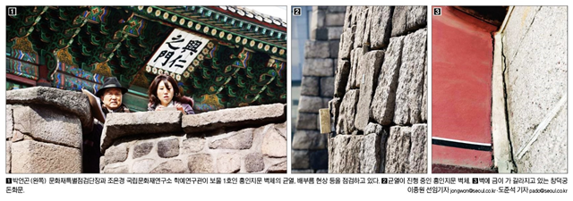 세계문화유산인 창덕궁 돈화문의 지붕이 내려앉고 있으며, 흥인지문은 옹성 벽체가 부풀어 오르는 현상이 진행되고 있다는 지적이 나왔다. 서울신문은 이와 관련한 1면 기사에서 균열이 진행 중인 흥인지문 벽체와 벽에 금이 가 갈라지고 있는 창덕궁 돈화문의 모습을 보도했다.