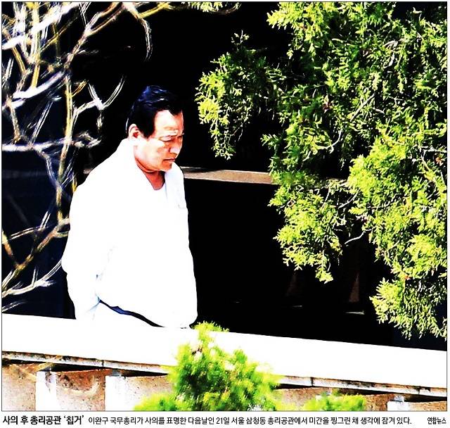 경향신문은 이완구 총리가 21일 서울 삼청동 총리공관에서 생각에 잠겨 있는 모습이 포착된 사진을 1면에 보도했다. 조선일보는 이 총리의 사진과 최경환 장관이 총리 대신 국무회의를 주재 중인 사진을 나란히 실었다.