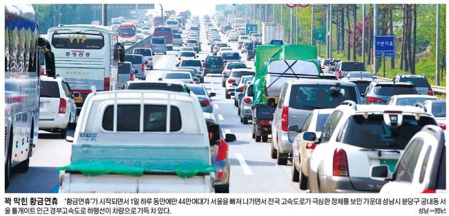 세계는 '꽉 막힌 황금연휴'란 1면 사진기사를 통해 '황금연휴'가 시작되면서 1일 하루 동안에만 44만여대가 서울을 빠져 나가면서 전국고속도로가 극심한 정체를 보인 가운데 성남시 분당구 궁내동 서울 톨게이트 인근 경부고속도로 하행선이 차량으로 가득 찬 모습을 담았다.