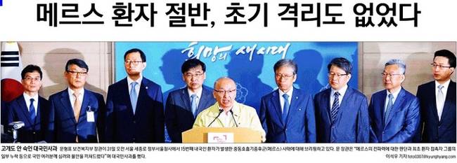 정부의 안이하고 허술한 초동 대처를 비판하는 신문도 있었다. 경향신문은 ‘고개도 안 숙인 대국민사과’라는 제목의 사진을 통해 정부의 미흡한 초기 대응을 지적했다. 경향신문은 “문형표 보건복지부 장관은 31일 서울 세종로 정부서울청사에서 15번째 내국인 환자가 발생한 메르스 사태에 대해 브리핑하며 ‘메르스의 전파력에 대한 판단과 최초 환자 접촉자 그룹의 일부 누락 등으로 국민 여러분께 심려와 불안을 끼쳐드렸다’며 대국민사과를 했다”면서 “정부의 안이하고 허술한 초동 대처가 3차 감염이 일어날 가능성과 혼란을 키웠다는 지적이 나온다”고 보도했다.