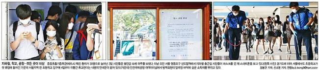 한겨레는 지하철, 학교, 공항 모든 곳이 비상이라며 시민들의 모습을 1면 사진으로 담았다. 한겨레는 “메르스 확진 환자가 30명으로 늘어난 3일 시민들은 불안감 속에 하루를 보냈다”며 이날 오전 서울 영등포구 신도림역에서 지하철 출근길 시민들이 마스크를 낀 채 스마트폰을 보고 있는 모습과 서울지역 한 초등학교 입구에 4일부터 이틀간 휴교한다는 내용의 안내문이 붙어 있는 모습을 전했다.