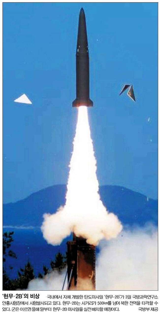 국민일보는 이날 국내에서 자체 개발한 탄도미사일 ‘현무-2B’가 국방과학연구소 안흥시험장에서 시험발사되고 있는 모습을 1면 사진으로 게재했다. 국민일보는 “현무-2B는 사거리가 500km를 넘어 북한 전역을 타격할 수 있다”며 “군은 이르면 올해 말부터 현무-2B 미사일을 실전배치할 예정”이라고 보도했다.