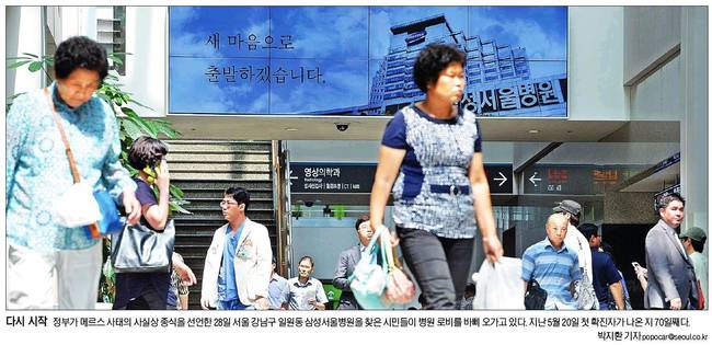 서울신문은 정부가 메르스 사태의 사실상 종식을 선언한 28일 서울 강남구 일원동 삼성서울병원을 찾은 시민들이 병원 로비를 오가고 있는 장면을 담았다.