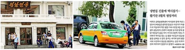 한겨레신문은 이희호 김대중평화센터 이사장이 3박4일간의 방북일정을 마치고 돌아오면서 이 자리에 동행했던 홍성규 사진가가 담은 평양거리의 모습을 대문사진으로 내걸었다. 한겨레신문은 “평남면옥 간판이 내걸린 음식점 앞에 평양시민들이 줄을 서서 기다리고(왼쪽 사진), 거리에서 택시를 잡는 등 평양 시민들의 일상생활을 살펴볼 수 있다”며 “홍씨는 과거와 달리 평양시내 사진이나 영상을 촬영하는 동안 북쪽이 전혀 제지하지 않았다고 밝혔다”고 전달했다.