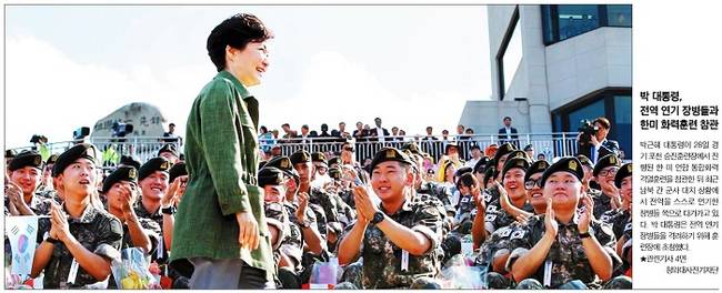 한국일보는 박 대통령이 전역 연기 장병들 쪽으로 다가가고 있는 모습을 1면 사진으로 담았다. 한국일보는 “박 대통령이 ‘여러분의 건승을 빈다’고 인사하자 장병들은 ‘대통령님, 사랑합니다!’라고 외쳤다”며 “박 대통령은 장병 대표 12명과 악수하면서 ‘훌륭합니다’, ‘모범적이셨습니다’ 등의 인사말을 일일이 건넸다”고 전했다.